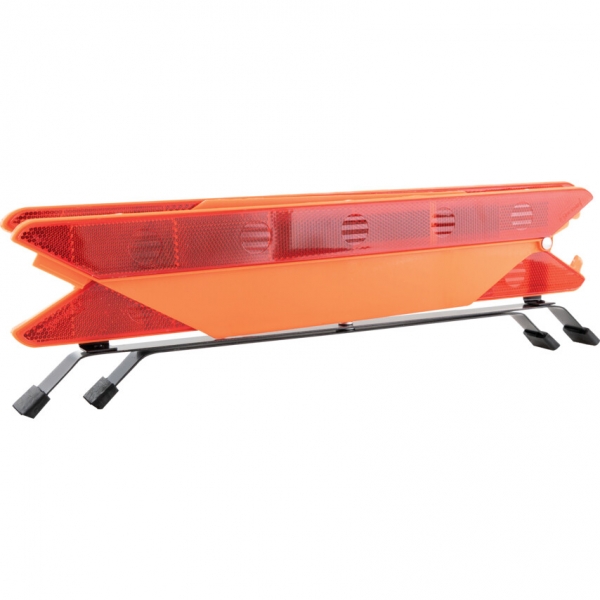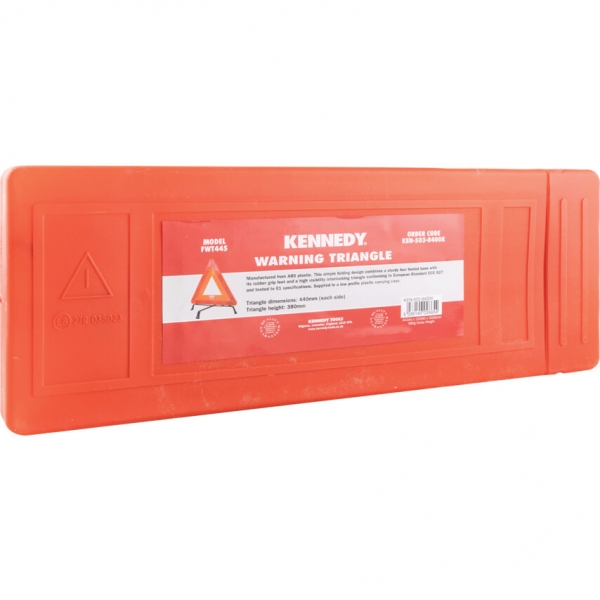 ABS műanyagból készült. Egyszerűen összehajtható kivitel, erős, négy lábon álló talp, és jól látható háromszög az ECE R27 Európai Szabvány előírásai szerint, bevizsgálva az E1 specifikációknak megfelelően. Műanyag hordtáskában kerül forgalomba.