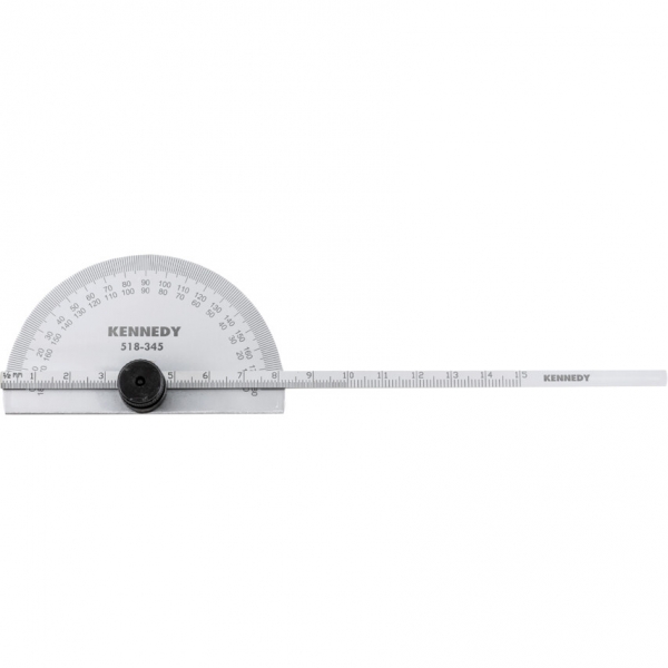 Köszörült acélból készült 0-180° skálabeosztással mindkét irányban a gyors és pontos mérésekhez. Amikor a vonalzó pontosan 90°- ra van beállítva, mélységmérőként használható.