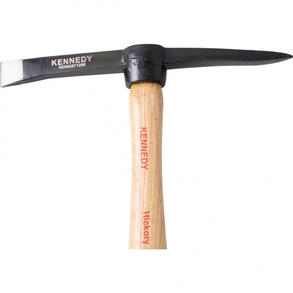 Edzett és megeresztett acélból gyártva, vésőélű és hegyes ütőfelülettel, finomrostú keményfa nyéllel.