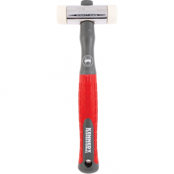 Puhakalapács erős nejlon betétekkel, melyek csavarással rögzíthetők és szerszám használata nélkül, kézzel cserélhetők. Krómozott fej , polipropilén nyél kétrétegű, puha fogású markolattal. Erősített, tartós betétek, melyek a fejben kimunkált precíziós hornyokba akadva nem lazulnak ki használat közben.