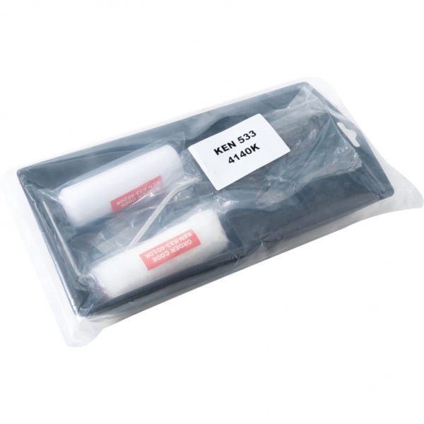Fogantyúval és tálcával kerül leszállításra. Tartalmaz egy 100mm-es (4") nagy sűrűségű habanyagból készült hengert fényezéshez, és egy 100mm-es (4") kötött bélést az emulziós festék használatára.