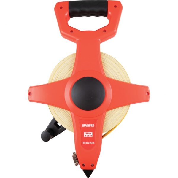 Nagy húzóellenállással rendelkez' üvegszálból készült szalag, amely nem hajlik meg és nem rozsdásodik. Egyik oldala fehér színű, a másik oldala sárga színű, az elcsavarodás megel'zése érdekében, a lemez két rétegű, a metrikus valamint angolszász méréseket is biztosító jelzések védése érdekében. Nyitott ABS tokban található, a végén horoggal és nagy D típusú fogó műanyag betéttel, a kényelmes fogás érdekében. Ugyanabban 2x gyorsabb felteker' funkció és jelöl' tüske.