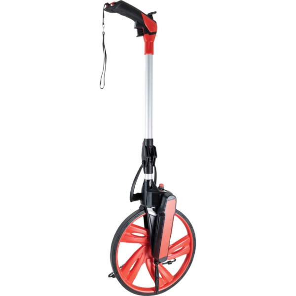 Masszív és könnyű kialakítás ütésálló kerékkel, szabadalmazott fogaskerekes átviteli szerkezettel és időjárásálló házzal. A behajtható alumíniumnyél automatikusan bekattan a kinyitott helyzetbe. Öt számjegyű számláló. 2 db visszaállító gomb. Rugós kitámasztó. Pontos hely jelölése. Markolattal működtetett fék. Hordtáskával.