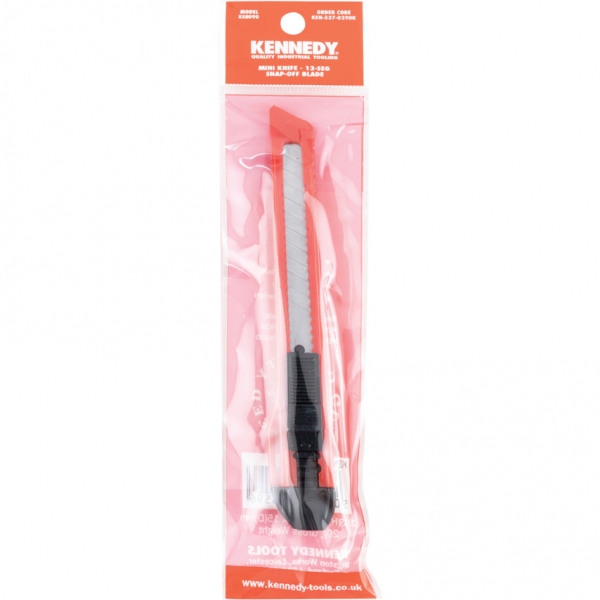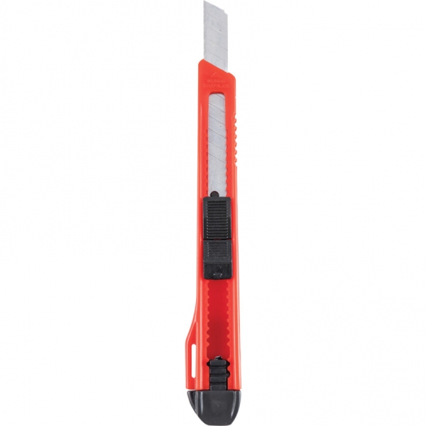 ABS műanyag ház gumi bevonattal a jobb fogás érdekében, acél pengesín, mely megakadályozza a penge megcsúszását vagy a ház elhasadását. Törhető késpenge. Egyedi rugóterhelésű automatikus pengecsere.