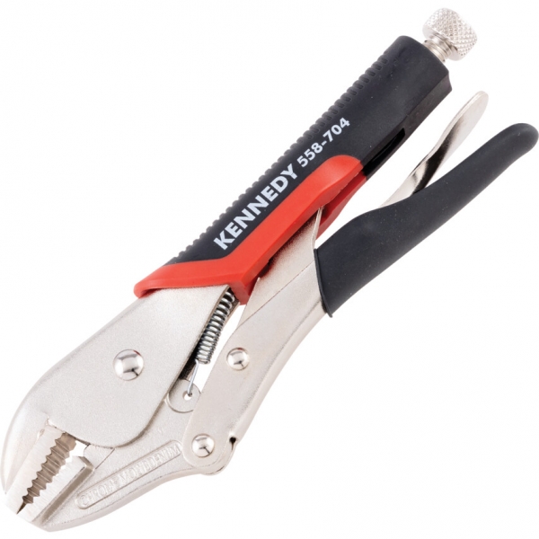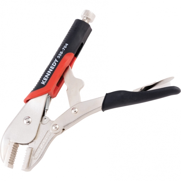 Króm-vanádium acél szerszámtest, süllyesztékben kovácsolt, edzettacél-pofák korrózióvédő fényes nikkelbevonattal. A pofa szorítónyomása a recézett fejű csavar segítségével szabályoz-ható, a pofák nyitását rugóerő biztosítja. A záró mechanizmus a beállított szorítóerővel zárva tartja a fogót, szabadon hagyva a felhasználó mindkét kezét.