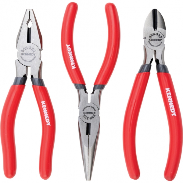 Tartalom: Félkerekcsőrű fogó 160 mm, Oldalcsípőfogó 160 mm, Egyetemes fogó 160 mm