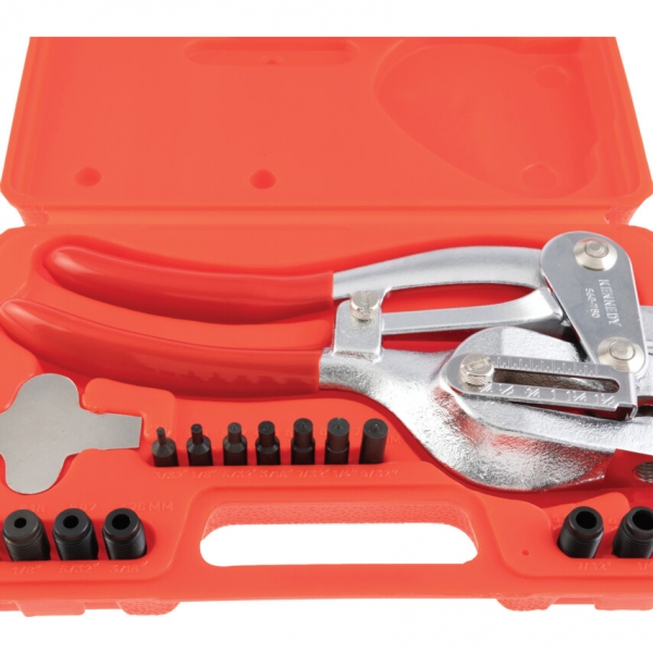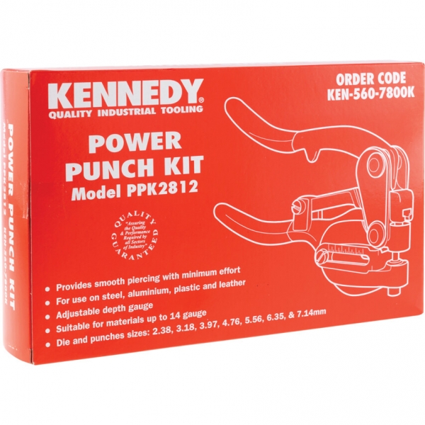 Alacsony erőkifejtéssel készíthetünk, szakíthatunk különböző átmérőjű lyukakat. Ajánlott acélokhoz, alumíniumhoz, műanyagokhoz és bőrökhöz. Állítható lemezvastagság és különböző átmérőjű matricák és lyukasztótüskék: 2.38, 3.18, 3.97, 4.76, 5.56, 6.35 és 7.14mm.