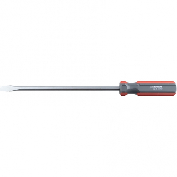 Hagyományos 'hornyolt' markolat. Selyemfényű, edzett és köszörült króm ötvözetb'l készült penge. Ez a csavarhúzó típus nyújtja a legszélesebb választékot. Olaj-, sav- és ütésálló műanyag markolat.