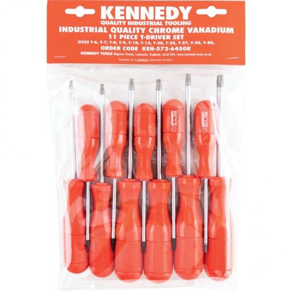 Torx: T6 x 75, T7 x 75, T8 x 75, T9 x 75, T10 x 75, T15 x 100, T20 x 100, T25 x 100, T27 x 100, T30 x 100 és T40 x 100.