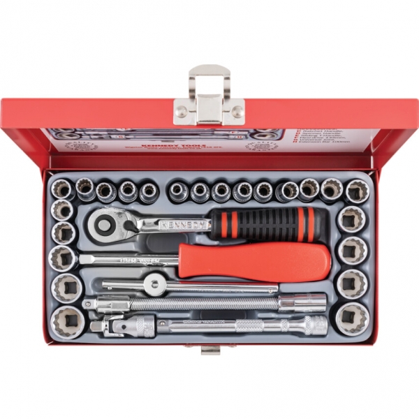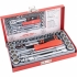 AF-colos dugókulcsok: 3/16", 7/32", 1/4", 9/32", 5/16", 11/32", 3/8", 7/16", 1/2", 9/16". Kiegészít'k: racsnis hajtószár, csavarhúzó markolatú hajtószár, T-hajtószár, 145 mm-es flexibilis hosszabbító, univerzális csukló, 100 mm-es hosszabbító.