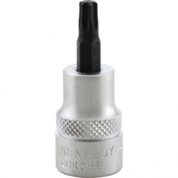 Ideális autó- és repülőgépipari felhasználásokra ahol a megbízhatóság és hozzáférhetőség alapvető követelmények. Rögzítőelemek ki- illetve becsavarásához. Duplán recézett felület amely jobb fogást, tapadást biztosít olajos/zsíros kézzel. Krómozott, polírozott, króm-vanádium acél. Belső négyszög minden oldala horonnyal. Teljes hossz: 50 mm, Bit hossz: 20 mm. DIN szabványok szerint gyártva.