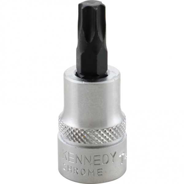 Ideális autó- és repülőgépipari felhasználásokra ahol a megbízhatóság és hozzáférhetőség alapvető követelmények. Rögzítőelemek ki- illetve becsavarásához. Duplán recézett felület amely jobb fogást, tapadást biztosít olajos/zsíros kézzel. Krómozott, polírozott, króm-vanádium acél. Belső négyszög minden oldala horonnyal. Teljes hossz: 50 mm, Bit hossz: 20 mm. DIN szabványok szerint gyártva.