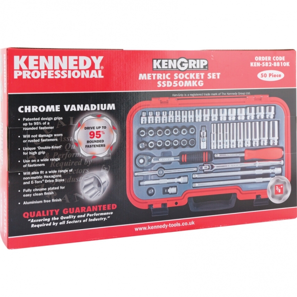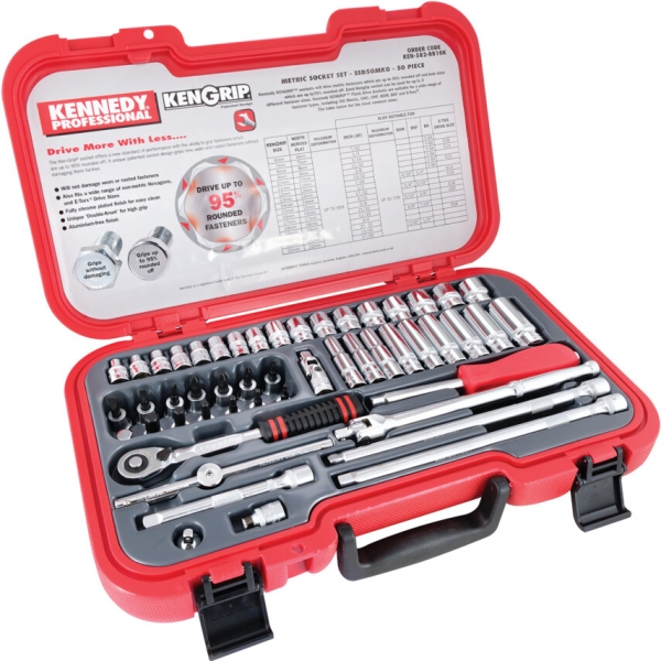 KEN-GRIP DUGÓKULCS KÉSZLETEK- 3/8" NÉGYSZÖG MEGHAJTÓ, 50 DARABOS METRIKUS KÉSZLET