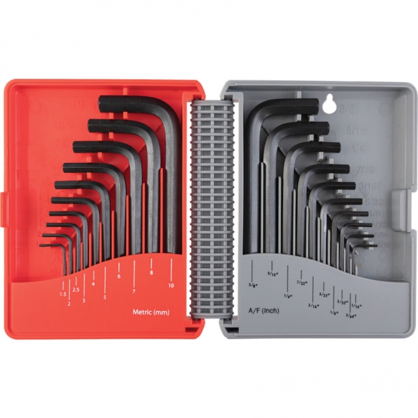 Inch - 10 darabos készlet tartalma: 1/16”, 5/64”, 3/32”, 1/8”, 5/32”, 3/16”, 7/32”, 1/4”, 5/16” és 3/8”.