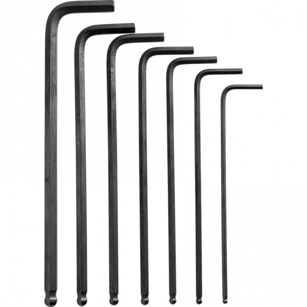 Teljesen átedzett karbonacélból gyártva a DIN 911 szabvány előírásai szerint. A precíz vágású vég és a pontos mm-es és AF-colos méretezés biztosítja a kulcsnyílásokba való tökéletes illeszkedést. A hosszabb, gömbvégű szár max. 30°-os szögelfordulást tesz lehetővé. Fekete oxidált kivitel.