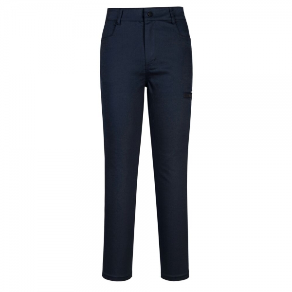 2 irányú twill stretch alapanyaggal, kopásálló oxford poliészterrel, háromszoros varrásokkal, magas derékkal, 6 sokoldalú, praktikus tárolózsebbel, 2 hátsó zsebbel, 2 oldalsó zsebbel és karcsú szabással (sztreccs anyaggal) rendelkező női nadrág.