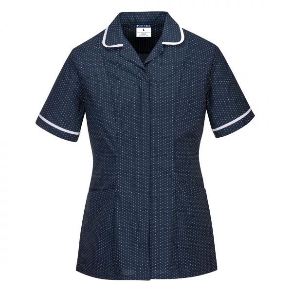 Ez a tunika Kingsmill sztreccsből készült, pöttyös mintázatú. Twill anyagból, amely úgy lett kialakítva, hogy a testtel együtt mozogjon a mindennapi munka során. Ez a stílus klasszikus megjelenést biztosít. ● 2-irányú twill stretch anyag a könnyedség érdekében, mozgást és további kényelmet biztosít ● Action hátkialakítás az extra mozgásszabadságért ● 3 zseb a bőséges tárolásért ● Rejtett ollózseb ● Elülső cipzáras nyílás a könnyű hozzáférésért ● Vízálló zseb a biztonságos tárolásért ● Női szabás ● Új stílus