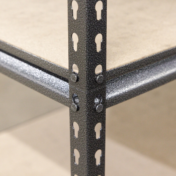 Az állványrendszer tartóoszlopai és keresztrúdjai közepes teherbírású acélból készülnek korrózióálló porbevonattal és gumitalpakkal a padló védelme érdekében. Könnyen összeszerelhet', az illesztések csavarok nélkül rögzíthet'k, így ezek nem okoznak gondot. A polcok könnyen felszerelhet'k és akár 150kg súlyt is elbírnak egyenletesen elosztott terhelés mellett, ha az állvány rögzítve van a falhoz.