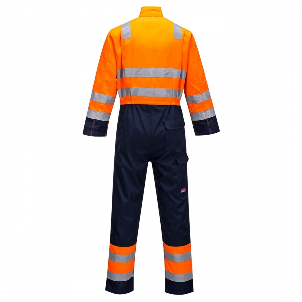 Ez az overál maximális védelmet nyújt számos veszélyes környezetben. Teljes körűen minősített a GO/RT és az EN ISO 20471 szabvány szerint. A kéttónusú design stílusos megjelenést biztosít.,Action hát,Antisztatikus,UPF 50+,CE minősítés,Tépőzáras állítható mandzsetta ,Vonalzótartó zseb,Rádió hurkok,Texpel folttaszító bevonat,Rejtett kétutas réz cipzár,Lángálló ipari mosásra alkalmas szalag ,Oldalt gumírozott derék,Olvadt fém fröccsenések ellen minősítve,Megfelel a GO/RT 3279 vasúti szabványnak,Sugárzó konvektív és kontakt hő,Anyagában lángálló tulajdonságai nem csökkennek,Két rétegű térdvédő zsebek