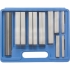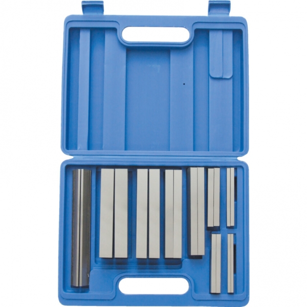 Edzett és köszörült acél párhuzamhasábok műhelymunkákra. Párban kerül forgalomba. Megmunkálás el'tti szintezéséhez vagy gépműhelyekben.