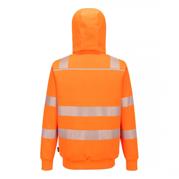 Kötött szövet szálcsiszolt hatású hátrésszel, meleget és komfortot biztosító polár béléssel és bordás mandzsettával, 2 oldalsó zsebbel, bordázott szegéllyel, hőillesztett, szegmentált fényvisszaverő szalaggal, a biztonságos tárolás érdekében 2 zsebbel, az időjárás elleni további védelemért kapucnival, 40+ UPF minősítésű alapanyaggal (az UV-sugarak 98%-át blokkolja), az EN ISO 20471 szabvány szerint 50 mosásra minősítéssel, maximális kényelmet biztosító, teljesen gumírozott derékkal és CE minősítéssel rendelkező jól láthatósági pulóver, amely megfelel a RIS 3279-TOM vasúti szabványnak (csak a narancs szín!).
