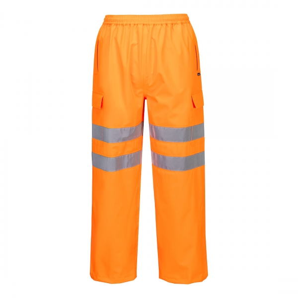 3 rétegű vízálló anyaggal, a víz behatolását megakadályozó vízálló ragasztott varratokkal, rendkívül vízálló, PFAS-mentes Texpel Splash Eco szövetkikészítéssel (a víz lepereg a szövet felületéről), húzózsinórral állítható derékrésszel, a fel- és levételt megkönnyítő oldalsó lábszár cipzárral, két oldalsó átjárható zsebbel, könnyen hozzáférhető cargo zsebekkel, dupla varrásokkal, a fokozott láthatóságért fényvisszaverő szalaggal, tartós, légáteresztő, szélálló és vízálló szövettel, a biztonságos tárolás érdekében 2 zsebbel, az EN ISO 20471 szabvány szerint 50 mosásra minősítéssel, maximális kényelmet biztosító, teljesen gumírozott derékkal és CE minősítéssel rendelkező jól láthatósági nadrág, amely megfelel a RIS 3279-TOM vasúti szabványnak (csak a narancs szín!).