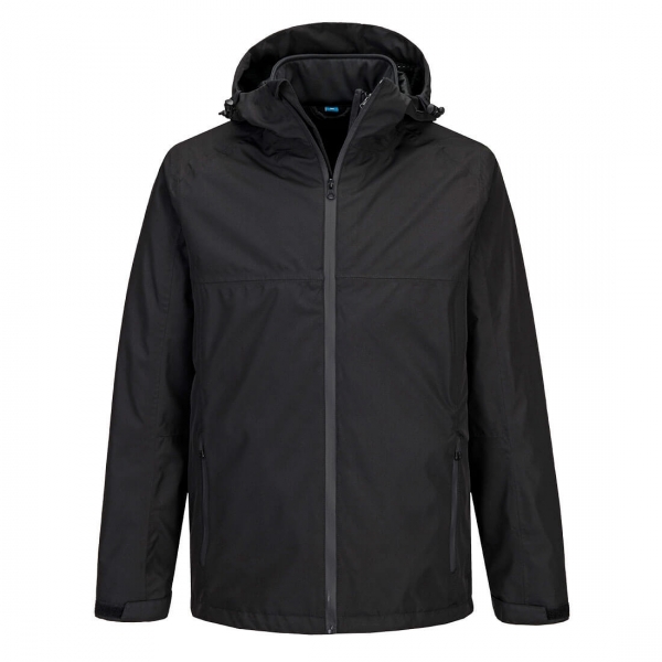 Tartós, légáteresztő, szélálló és vízálló szövettel, vízálló ragasztott varratokkal, kivehető belső kabáttal, állítható formázott kapucnival (függőleges és vízszintes állítási lehetőségekkel), állvédővel, cipzáras zsebekkel, hajlított kar kialakítással, tépőzáras állítható mandzsettával, vágott szegéllyel, 5 sokoldalú praktikus tárolózsebbel és CE minősítéssel rendelkező 3 az 1-ben kabát.
