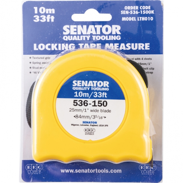Ütésálló műanyag ház csúszó szalagzárral. Zárórugóval segített szalagvisszafutás. Fém akasztóhorog szegecsrögzítéssel. Acél övakasztó és csuklószíj. A szalagzár a kívánt helyzetben rögzíti a szalagot. Erős, korrózióálló szalag és akasztóhorog. Az önbeálló horog biztosítja a belső és külső mérések pontosságát. Az 5 m-es és annál hosszabb mérőszalagok akasztóhorgait négy szegecs rögzíti (a 3 m/10' mérőszalagét kettő).