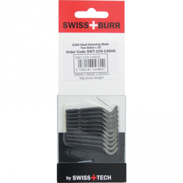 E202 - HSS sorjázó penge nagy igénybevételre, egyenes és furat élek sorjázására törékeny forgácsú anyagokhoz. E stílusú szár, B20 vágógeometria. Furatokban a penge kialakítása mindkét irányú mozgást lehet'vé teszi.