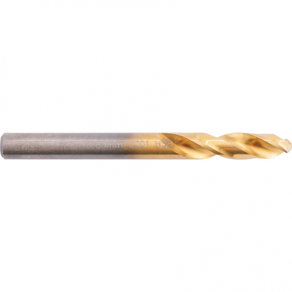 Általános célú fúrók automata szerszámgépeken és revolveresztergákon való használatra. Alkalmas acélok, öntöttvas, acélötvözetek és temperöntvények fúrására. A TiN bevonat hosszabb szerszámélettartamot vagy nagyobb forgácsolási sebességet biztosít. Csúcsszög: 118°, spirálemelkedés szöge: normál, fúrólélek vastagsága: normál, átmér' tűrése: h8, szár tűrése: f11. Gyártva a DIN1897 RN szabvány el'írásai szerint.