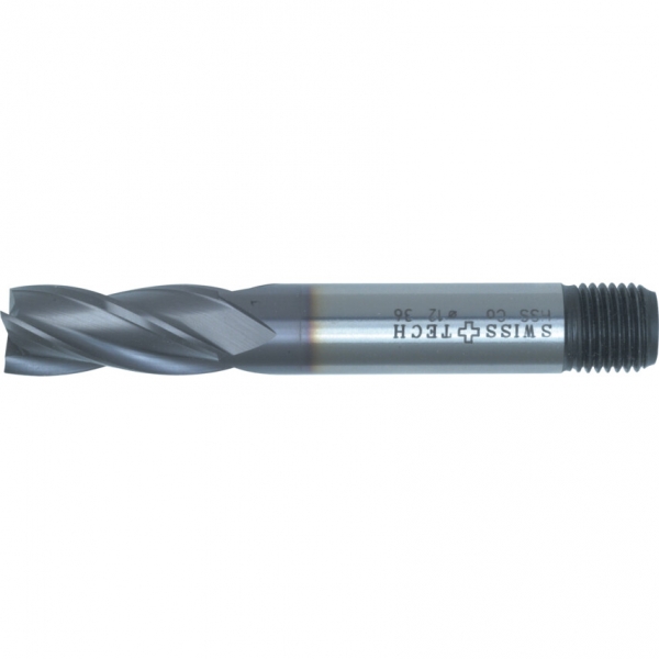 Középpontba futó vágóél. DIN1835D el'írásainak megfelel' menetes végű szár. Szár/dolgozó rész átmér' tűrése: +0.04 -0.0. HSS-Co 8% bevonat nélkül (Általános nagy sorozatú megmunkálásra), HSS-Co 8% TiCN bevonattal (Meghosszabbítja a szerszám élettartamát és javítja a megmunkált anyag felületi simaságát) és HSS-Co 8% TiALN bevonattal (Elvezeti a h't, ellenáll a h'terhelésnek, csökkenti a felületi súrlódást és nagy felületi keménységet biztosít).