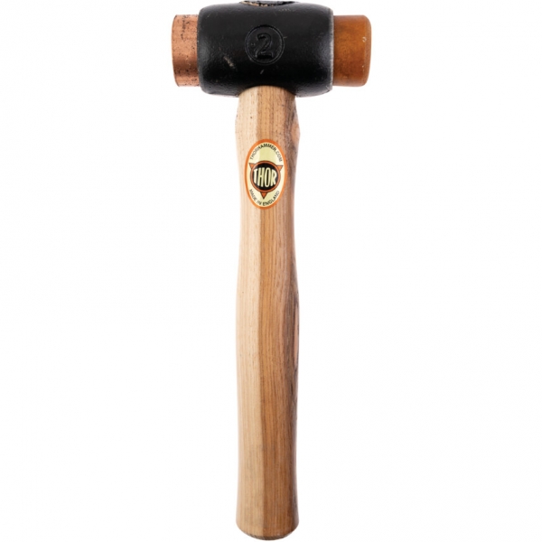 Kovácsolt vas fej, és tömör fanyél. A tiszta elektrolitréz betéttel nagy erejű ütést hajthatunk végre, míg a bőr betét rugalmas ütése nem hagy nyomot a felületen.
