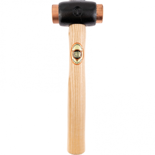 Kovácsolt vas fej tiszta elektrolitréz betétekkel nagy erejű ütésekhez. Tömör fanyél.