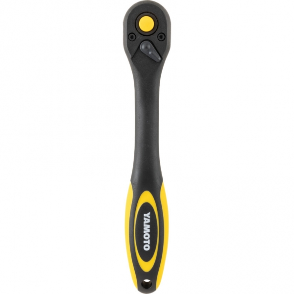 Kiváló minőségű, többkomponensű, forgatható racsnis hajtókar forgatható karral, gyorskioldó nyomógombbal és nyújtott markolattal, mely megakadályozza az ujjak felsértését. Többkomponensű anyagból készül, amely nagyon könnyűvé, mégis nagyon ellenállóváteszi. A 72 fogú fogaskerék maximális meghajtóerőt, a króm-vanádium mag pedig szilárdságot biztosít.