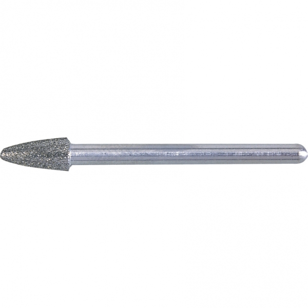 3 mm-es szár. Teljes hossz: 45 mm. Gyémántbevonat szemcsemérete 120/140. Javasolt üzemeltetési fordulatszám 15.000-30.000 rpm. Alkalmas keményfém, kerámia, szívós ötvözetek, cermet, szerszámacélok stb. precíziós csiszolására. Csomagolási egység: 10 db/csomag.