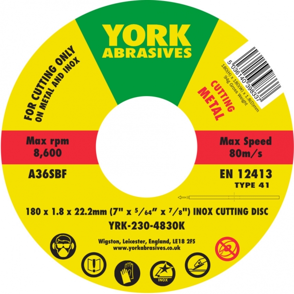 Cromwell YRK2304830K 180X1.8X22.23MM A36SBF INOX VÁGÓKORONG,T41